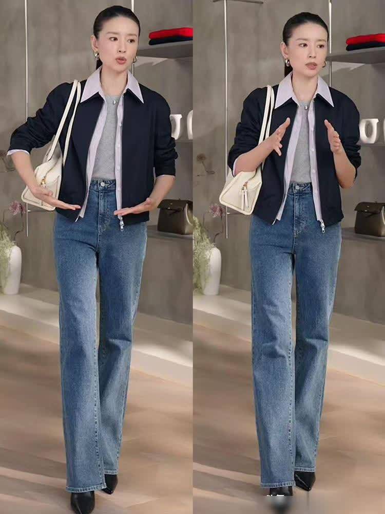 我以前总觉得秋装要“隆重”才够味,结果裹得像个粽子还被说“显老”。后来学她把针织衫解开两颗扣子,外搭件牛仔外套,破洞的设计让牛仔少了份硬气,多了点“我很随意但很会”的机灵。下身穿条牛仔阔腿裤,嫌裤脚太长就挽两圈,露出细细的脚踝,配双小白鞋,同事见了都夸“今天好有秋天的感觉”。原来美真的不用“用力”,松松垮垮反而更有味道。