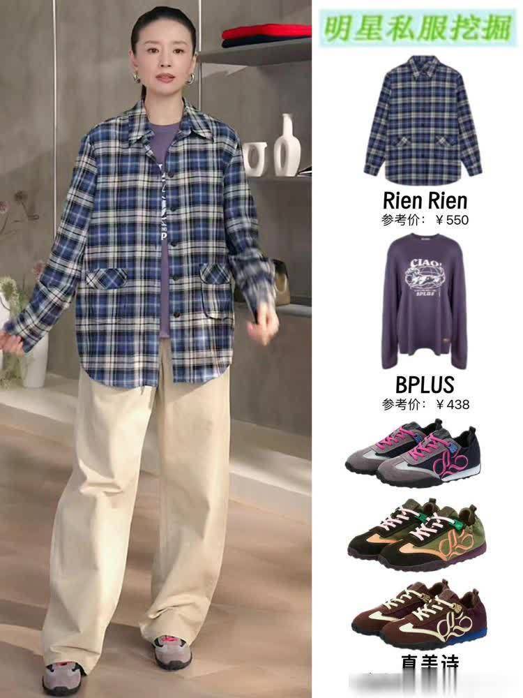 记得有次刷到她穿V领针织衫配格纹衬衫,外搭件黑色条纹外套。领口的V型自然延伸颈部线条,像给脖子加了道“拉长滤镜”;格纹的活泼中和了黑色的沉闷,整体看着舒服又有层次。突然懂了,时尚不是穿给别人看的,是穿给自己舒服的。就像她的香蕉裤,宽松到能装下秋天的风,却又不会显得臃肿,蹲下捡东西不卡裆,走路不贴腿,这种“舒服但好看”的平衡感,才是普通人最需要的穿搭哲学。